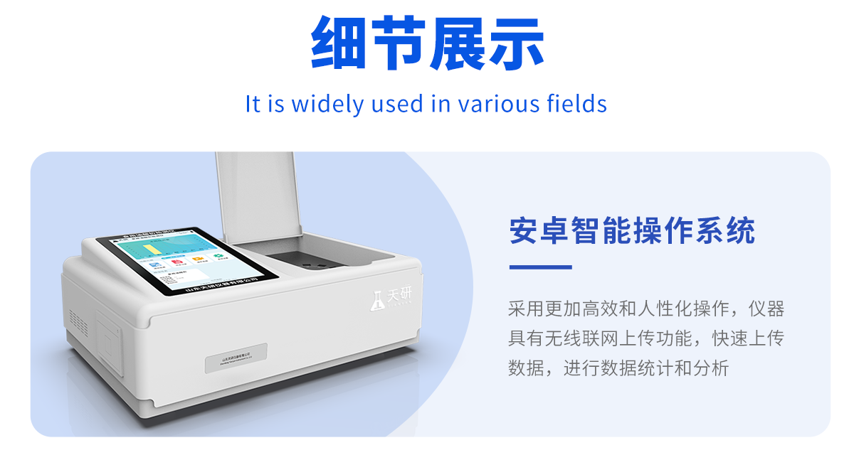 | 儀器采用臺式一體化系統(tǒng)檢測技術(shù),將分光光度模塊、新型農(nóng)殘檢測模塊、數(shù)字化管理模塊、無線通訊模塊高度集成于一體,支持檢測200種食品安全檢測項(xiàng)目,同時預(yù)留升級檢測方法。 | 儀器檢測模塊標(biāo)準(zhǔn)化、智能化,可隨意自由組合。檢測箱體內(nèi)置多個標(biāo)準(zhǔn)檢測單元,檢測模塊可以調(diào)整配置。 | 儀器采用全新安卓智能系統(tǒng),主控芯片采用 ARM Cortex-A7,RK3288/4核處理器,10.1寸高清液晶觸摸豎屏,更加**的UI交互界面,運(yùn)轉(zhuǎn)快捷;儀器配備無線通信模塊: 4G(APN)通訊模塊、Wifi模塊,藍(lán)牙傳輸,同時具有雙USB接口以及RJ45接口能以多種方式實(shí)現(xiàn)數(shù)據(jù)保存和數(shù)據(jù)傳輸功能。 | 創(chuàng)新檢測模式: | ★檢測通道:≥12通道;采用精密旋轉(zhuǎn)比色池設(shè)計,使用同芯片同光源校準(zhǔn)精度,解決不同光源之間的誤差值。1-12通道間誤差0.1%。(**號:ZL202022821055.2) | ★儀器具有自動識別比色皿檢測功能,即:將樣品比色皿放入儀器后,點(diǎn)擊樣品檢測,儀器自動識別比色皿進(jìn)行通道檢測。 | 進(jìn)口高精光源: | 高精度進(jìn)口四波長冷光源,通道配置 410、520、590、630nm 波長光源,一個光源芯片驅(qū)動一個光源,誤差極小,每臺設(shè)備單獨(dú)**校準(zhǔn)光源,**比對,同時參照四種不同波段光源全方位覆蓋市面上99%的農(nóng)殘食品項(xiàng)目檢測。 | 智能化操作系統(tǒng): | 便捷操作系統(tǒng):設(shè)備檢測時可在同一檢測界面自動對應(yīng)相關(guān)檢測通道一次性選擇1-12個樣品名稱,無須退出界面,節(jié)省操作時間。 | 數(shù)據(jù)集成系統(tǒng):設(shè)備首頁自動統(tǒng)計檢測數(shù)據(jù)包含:周檢測數(shù)據(jù)、月檢測數(shù)據(jù),全部檢測總數(shù)量,均包含檢測總數(shù),合格數(shù),不合格數(shù),以及相關(guān)柱形分析圖,對各項(xiàng)檢測數(shù)據(jù)清晰掌握,無需電腦查詢,更加快捷直觀。 | 項(xiàng)目預(yù)設(shè)系統(tǒng):支持添加單個及多個相同或不相同的任務(wù)預(yù)設(shè),一鍵快速調(diào)取,每一個任務(wù)分別可以設(shè)置不同的樣品、批次、編號、來源、備注、抽樣信息、檢測信息、受檢信息、復(fù)核信息等更多信息。無縫鏈接平臺和APP實(shí)時查看下發(fā)任務(wù)。 | 數(shù)據(jù)監(jiān)管系統(tǒng):同步對接監(jiān)管平臺,數(shù)據(jù)可局域網(wǎng)和互聯(lián)網(wǎng)數(shù)據(jù)上傳,檢測結(jié)果可選擇直接傳至食品安全監(jiān)管平臺。集成OSS輸出存儲服務(wù)、區(qū)分設(shè)備定向管理應(yīng)用,進(jìn)行區(qū)域食品安全監(jiān)管及大數(shù)據(jù)分析處理與數(shù)據(jù)統(tǒng)計,檢測區(qū)域食品安全長短期動態(tài),達(dá)到食品安全問題預(yù)估、預(yù)警。 | 自定義打印系統(tǒng):內(nèi)置全新打印系統(tǒng),新創(chuàng)自定義打印方式,可按需靈活設(shè)置開啟或關(guān)閉:產(chǎn)品合格證(國家農(nóng)業(yè)部標(biāo)準(zhǔn)要求),二維碼,抽樣信息、檢測信息,受檢信息、復(fù)核信息、抽樣日期、檢測日期等信息的打印。 | 系統(tǒng)遠(yuǎn)程更新功能:可定向分客戶分儀器更新系統(tǒng),按照不同客戶后期實(shí)際需求添加項(xiàng)目,無需機(jī)器返廠,即可遠(yuǎn)程實(shí)時升級全新系統(tǒng),節(jié)省時間成本及避免運(yùn)輸造成設(shè)備損壞。 | 儀器主機(jī)采用一體化防水、抗壓、防撞擊、防腐蝕箱體設(shè)計,同時配備交直流供電,可連接車載電源,可選配大容量充電鋰電池,滿足現(xiàn)場野外檢測需求。 | 安全證書,放心保障:儀器具有中國計量科學(xué)研究院校準(zhǔn)證書,**認(rèn)證。 |