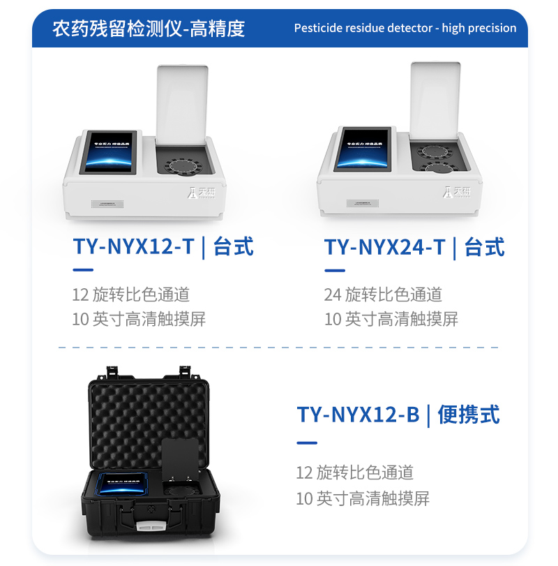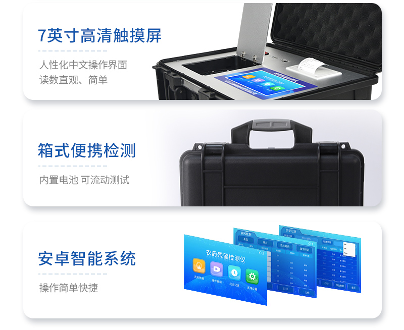 產(chǎn)品簡介:山東天研儀器有限公司生產(chǎn)的農(nóng)藥殘留檢測儀廣泛應(yīng)用于主要用于蔬菜、水果、茶葉、糧食、農(nóng)副產(chǎn)品等食品中農(nóng)藥殘留的快速檢測,依據(jù)國標(biāo)GB/T5009.199-2003進行檢測,適用于果蔬茶生產(chǎn)基地以及農(nóng)貿(mào)批發(fā)銷售市場現(xiàn)場檢測,餐館、學(xué)校、食堂、家庭果蔬加工前的安全速測等。技術(shù)參數(shù):機器采用全新安卓智能系統(tǒng),主控芯