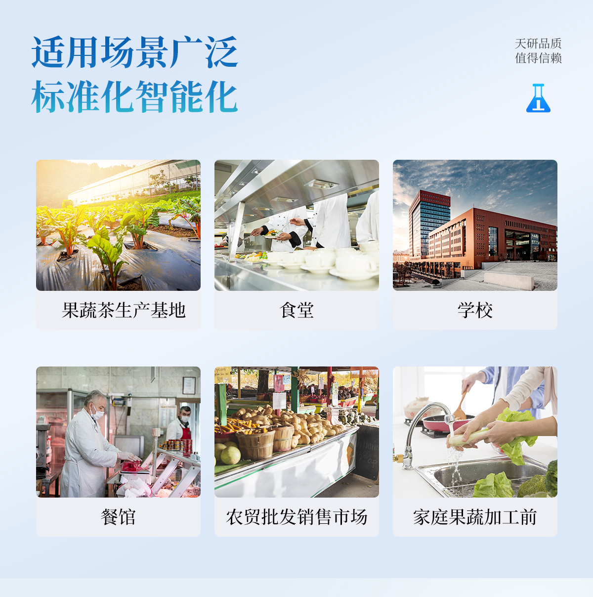 廣泛應(yīng)用于主要用于蔬菜、水果、茶葉、糧食、農(nóng)副產(chǎn)品等食品中有機(jī)磷和氨基甲酸酯類農(nóng)藥殘留的快速檢測;此外還可用于果蔬茶生產(chǎn)基地和農(nóng)貿(mào)批發(fā)銷售市場現(xiàn)場檢測,餐館、學(xué)校、食堂、家庭果蔬加工前的安全速測等。