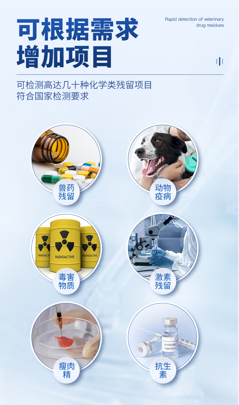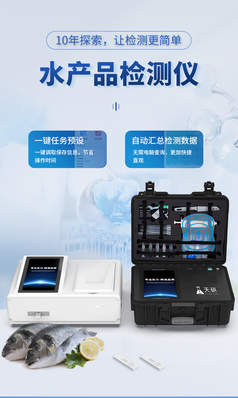 山東天研儀器有限公司生產(chǎn)的水產(chǎn)品安全檢測(cè)儀可適用于魚(yú)、蝦等水產(chǎn)中孔雀石綠、氯霉素、硝基呋喃類:呋喃唑酮(AOZ)、呋喃它酮( AMOZ )、呋喃妥因(AHD)、呋喃西林(SEM)、呋喃那斯、磺胺類、激素類、四環(huán)素類、金霉素、土霉素、甲砜霉素、氟苯尼考、喹諾酮類藥物:噁喹酸、諾氟沙星、恩諾沙星、環(huán)丙沙星、氧氟沙星等藥物殘留的定性檢測(cè) 該儀器廣泛應(yīng)用于食藥監(jiān)局、衛(wèi)生監(jiān)督部門、農(nóng)業(yè)部門、商業(yè)系統(tǒng)養(yǎng)殖場(chǎng)、屠宰場(chǎng)、食品肉產(chǎn)品深加工企業(yè)、畜牧獸醫(yī)、檢驗(yàn)檢疫部門、食品生產(chǎn)企業(yè)、農(nóng)副產(chǎn)品批發(fā)市場(chǎng)、農(nóng)業(yè)生產(chǎn)基地、超市、餐廳、高教院校、食堂等單位部門對(duì)食品中的不安全指標(biāo)進(jìn)行監(jiān)測(cè)使用。