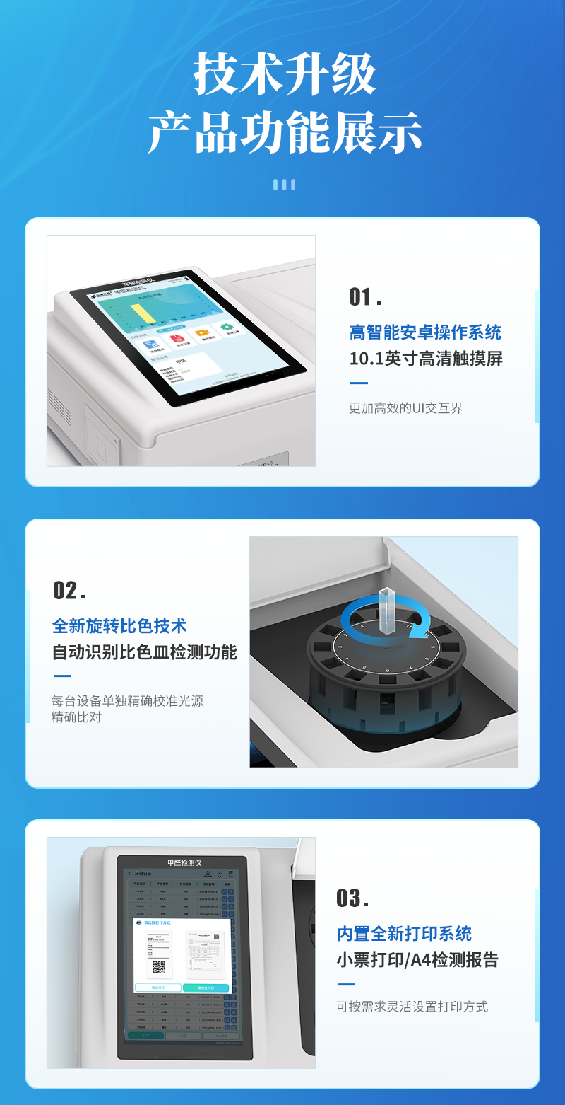 可快速定量檢測各類食品中的甲醛的含量,儀器預(yù)留其他項目檢測程序和端口,根據(jù)日后需求可方便的自主增加檢測項目。日后可升級為檢測,水產(chǎn)品,肉制品,面制品的綜合類型儀器。