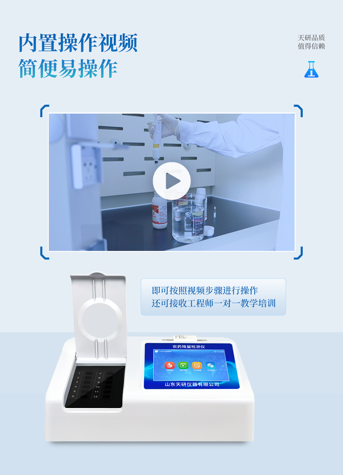 檢測標(biāo)準(zhǔn):依據(jù)國家標(biāo)準(zhǔn)方法(GB/T5009.199-2003)以及世界衛(wèi)生組織WHO、世界糧農(nóng)組織FAO殘留農(nóng)藥檢測標(biāo)準(zhǔn)、世界環(huán)境保護(hù)局EPA參照攝入量等要求來設(shè)計。采用酶抑制率比色法對水果、蔬菜等農(nóng)林產(chǎn)品中有機(jī)磷和氨基甲酸酯類農(nóng)藥含量進(jìn)行快速準(zhǔn)確的檢測,乙酰膽堿酯酶和丁酰膽堿酯酶試劑均可以使用,符合國家標(biāo)準(zhǔn)和農(nóng)業(yè)部標(biāo)準(zhǔn)的要求。