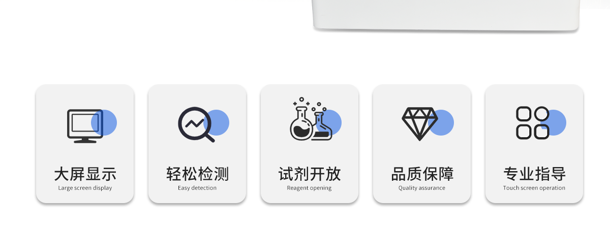 | 人性化界面,操作方便 | 儀器按照試劑要求自動、按時(shí)、按量加入試劑,提高工作效率 | 儀器自動對未正常放置的樣本或異常的樣本進(jìn)行檢查并提示 | 采用**的冷光源,保證了光源的穩(wěn)定性及數(shù)據(jù)的準(zhǔn)確性 | 大容量存儲器,能存儲12萬條數(shù)據(jù),滿足客戶需求 | 內(nèi)置微型熱敏打印機(jī),快速打印檢測結(jié)果,方便數(shù)據(jù)留存 | 可通過數(shù)據(jù)線連接電腦,將檢測的數(shù)據(jù)上傳至電腦端 | 儀器可自動清洗管路,避免試劑污染 | 儀器檢測消耗試劑量和常規(guī)儀器一致 | 儀器具有自動加溫溫控系統(tǒng) |