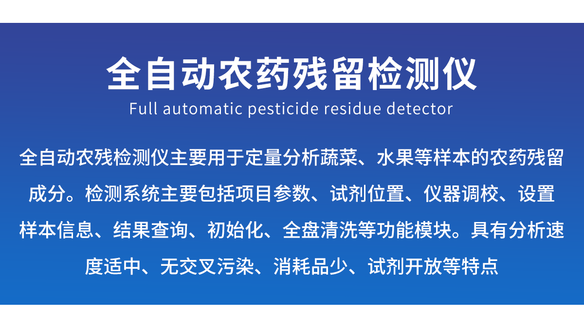 天研全自動農(nóng)藥殘留檢測儀TY-NY2000,檢測標(biāo)準(zhǔn):依據(jù)國家標(biāo)準(zhǔn)方法(GB/T5009.199-2003)以及世界衛(wèi)生組織WHO、世界糧農(nóng)組織FAO殘留農(nóng)藥檢測標(biāo)準(zhǔn)、世界環(huán)境保護(hù)局EPA參照攝入量等要求來設(shè)計(jì)。采用酶抑制率比色法對水果、蔬菜等農(nóng)林產(chǎn)品中有機(jī)磷和氨基甲酸酯類農(nóng)藥含量進(jìn)行快速準(zhǔn)確的檢測。
