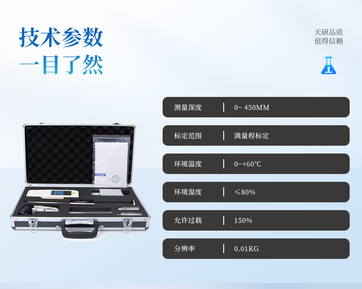 | 型號:TY-JSD2 | **負荷:100Kg (Kg、N和Lb三種單位可自由轉(zhuǎn)換) | 分辨率:0.01Kg | 精度:±1% | 測量深度:0~ 450mm | 電源:充電電源220VIAC,電池連續(xù)工作時間6~8小時 | 穩(wěn)定性:溫漂0.2uV/℃ (o-60℃),零漂≤0.1%/8小時/F·s | 標定范圍:滿量程標定 | 環(huán)境溫度:0~+60℃ | 環(huán)境濕度:≤80% | 允許過載:150% | 供電方式:鎳氰電池組/220V AC充電4~6小時 |