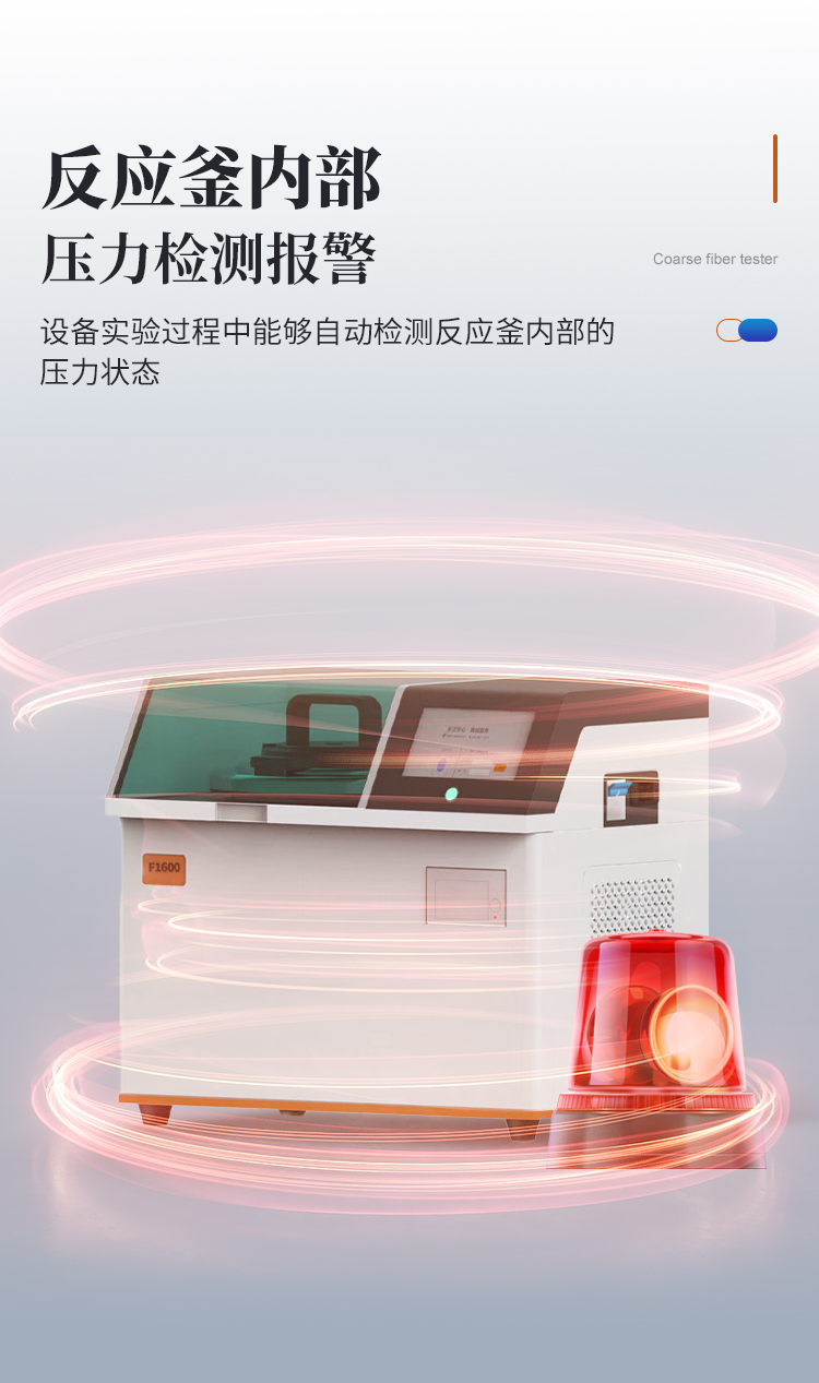 | 1、濾袋式纖維測定儀是遵循**和國標規(guī)定的消煮法,利用化學(xué)溶劑提取纖維含量,很好的解決了坩鍋抽濾、轉(zhuǎn)移法所造成的費工費時、火力控制不當、殘渣易損失等問題,全自動進行溶劑加注、恒溫加熱、消煮、震蕩、廢液排出等操作。適用于測定粗纖維CF、酸性洗滌纖維ADF、中性洗滌纖維NDF、酸性洗滌木質(zhì)素等的測定。 | 2、運用技術(shù):濾袋技術(shù),適用于CF、NDF、ADF方法的纖維分析。 | 3、大屏幕人機交互界面,16位真彩色液晶觸摸屏,操作界面簡單易用,便于用戶的學(xué)習(xí)和使用。 | 4、內(nèi)置可設(shè)置的實驗方案,共可以設(shè)置50種不同的實驗方案。 | 5、內(nèi)置用戶登錄功能,共有5個用戶賬戶。 | 6、內(nèi)置用戶賬戶權(quán)限設(shè)置,每個登錄賬戶均可設(shè)置自己的操作權(quán)限,不同等級的操作權(quán)限對機器能進行操作的功能不一樣。 | 7、指紋登錄功能,無需輸入用戶名和密碼,使用錄入的指紋信息即可登錄,更加方便快捷。 | 8、內(nèi)置儀器功能部件檢測功能,儀器內(nèi)部所有的可動工作部件在屏幕上均有對應(yīng)的檢測開關(guān),方便用戶日常維護。 | 9、特殊處理反應(yīng)釜,反應(yīng)釜體采用特殊材質(zhì),耐高溫、高壓和化學(xué)腐蝕,使用壽命長。 | 10、反應(yīng)釜防干燒功能,內(nèi)置軟件和硬件雙重防干燒保險,防止釜體干燒。 | 11、反應(yīng)釜密閉性自檢技術(shù),反應(yīng)釜能夠在實驗過程中進行密閉性自檢,防止反應(yīng)釜蓋不緊。 | 12、放泡沫結(jié)構(gòu)設(shè)計,獨特的消煮結(jié)構(gòu)能夠有效防止試劑加熱時產(chǎn)生的泡沫,且無需添加正辛醇等消泡劑,節(jié)省試劑且更環(huán)保無異味。 | 13、采用大功率加熱鋁塊,提高加熱效率。 | 14、密閉消煮技術(shù),實驗過程中產(chǎn)生的蒸汽不會擴散到設(shè)備以外,實現(xiàn)了不需要冷卻水進行冷卻的微沸消煮功能,設(shè)備使用更加方便。 | 15、**控溫技術(shù),反應(yīng)釜內(nèi)部安裝有高精度溫度傳感器,**控制試劑為微沸狀態(tài),實驗效果好。 | 16、反應(yīng)釜內(nèi)部壓力檢測報警功能,設(shè)備實驗過程中能夠自動檢測反應(yīng)釜內(nèi)部的壓力狀態(tài),一旦溫度過高導(dǎo)致壓力過大會自動產(chǎn)生報警并暫停實驗,同時屏幕上會自動彈出報警界面。 | 17、實驗完成提示功能,一旦整個實驗完成設(shè)備會自動產(chǎn)生蜂鳴聲進行提示,同時屏幕上也會顯示實驗完成的提示界面。 | 18、內(nèi)置3種纖維的結(jié)果計算公式和打印機,無需人工計算,輸入?yún)?shù)即可打印測試結(jié)果。 |