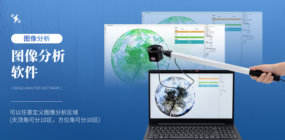 | 魚眼鏡頭可自動保持水平狀態(tài):專門為植物冠層結構測量設計的小型魚眼攝像鏡頭安裝在手持式萬向平衡接頭上,可自動保持鏡頭處于水平狀態(tài),無需三角架 | 魚眼鏡頭可以伸入至冠層中:鏡頭安裝在搖臂一端,由于小巧和帶有測量桿,可以方便地水平向前或垂直向上伸入到冠層不同高度處,快速地進行分層測量,測出群體內光透過率和葉面積指數垂直分布圖 | 圖像分析軟件:圖像分析軟件可以任意定義圖像分析區(qū)域(天頂角可分10區(qū),方位角可分10區(qū)) | 可屏蔽不合理冠層部分:對不同方向的冠層進行區(qū)域性分析時,可以任意屏蔽地物景象和不合理的冠層部分(如缺株、邊行問題等)。對不同天頂角起始角和終止角的選擇,可以避開不符合計算該冠層結構參數的冠層孔隙條件,通過手動調節(jié)閾值,可以更精準的測量出葉面積指數等參數 | 軟件只適配Windows 10及Windows 10以上系統(tǒng) |