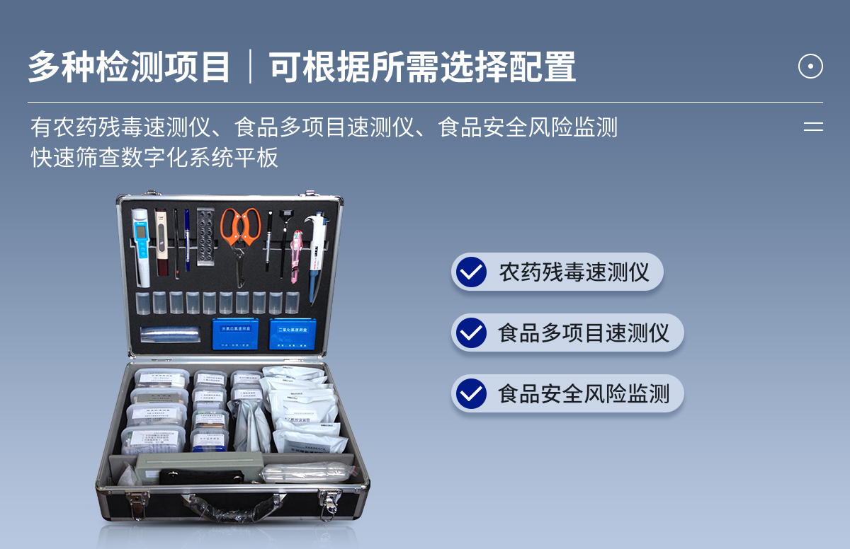 檢測箱預(yù)裝輔助設(shè)備微型電子天平1臺,計算器1個, 手動可調(diào)式移液器1把,移液頭10支,多功能剪刀1把,微型水浴鍋1個,食品中心溫度計1支,試管架2個,比色管5支,試管5支,濾紙1盒,漏斗4個,藥勺3個,250ml量筒和250ml塑料杯各1個,提取罐10個,樣品杯120個,一次性滴管30支,PH試紙1袋。購置說明:檢測箱預(yù)裝輔助設(shè)備中的器材