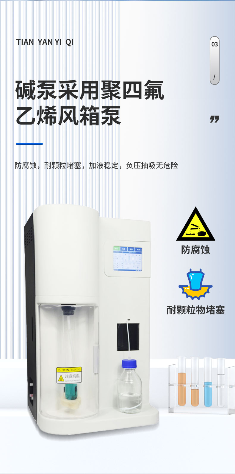 用于檢測(cè)食品、藥品、土壤、化工、農(nóng)業(yè)、林業(yè)、材料、環(huán)境監(jiān)測(cè)等領(lǐng)域氮含量或蛋白質(zhì)含量測(cè)定、陽離子交換量測(cè)定。