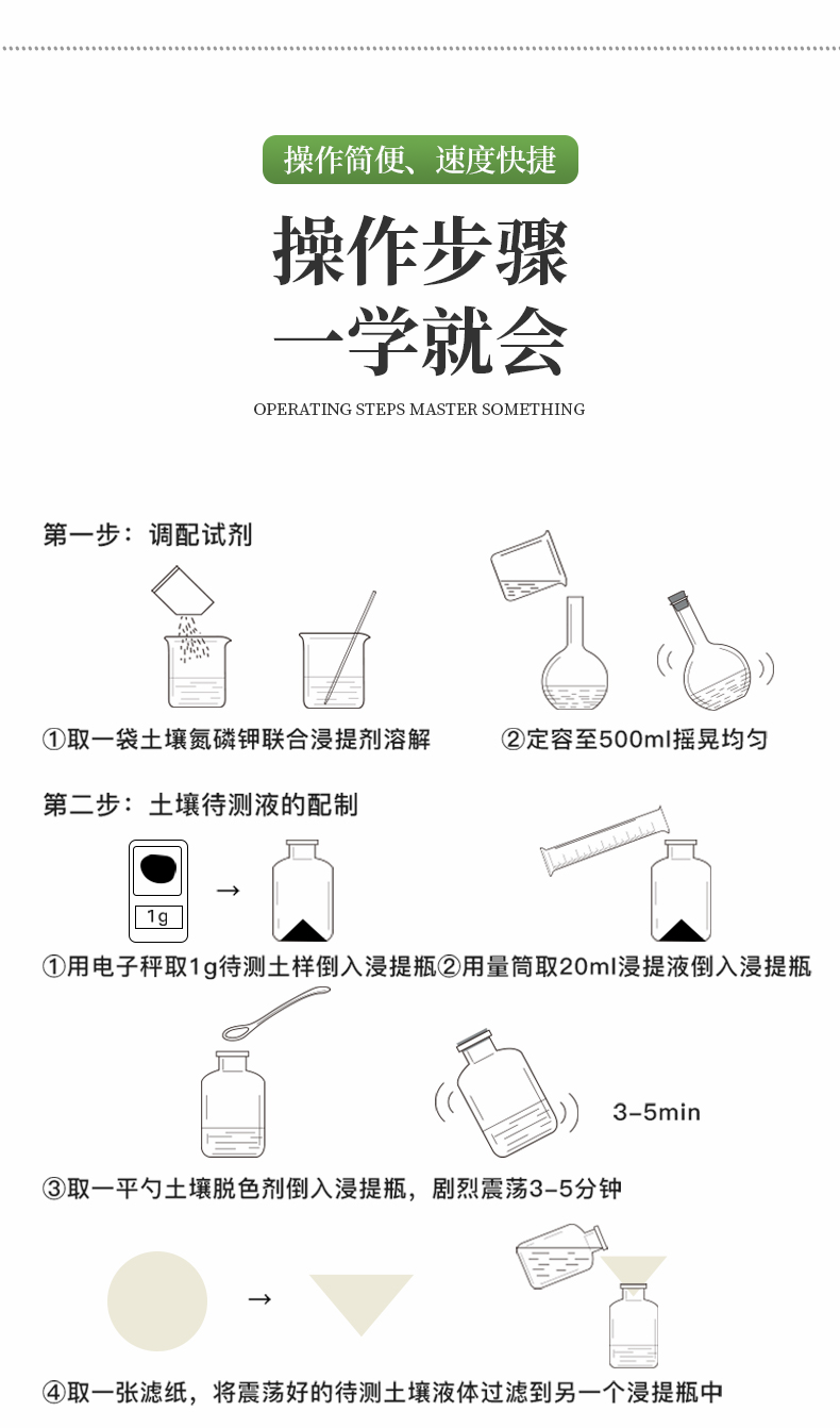 | 測一個土壤樣品(N、P、K)≤30分鐘,同時檢測三個土壤樣品(N、P、K)≤40分鐘; | 測試一個肥料樣(N、P、K)≤50分鐘,同時檢測三個肥料樣品(N、P、K)≤1.5小時。 |