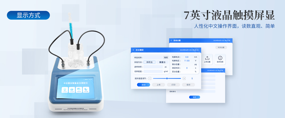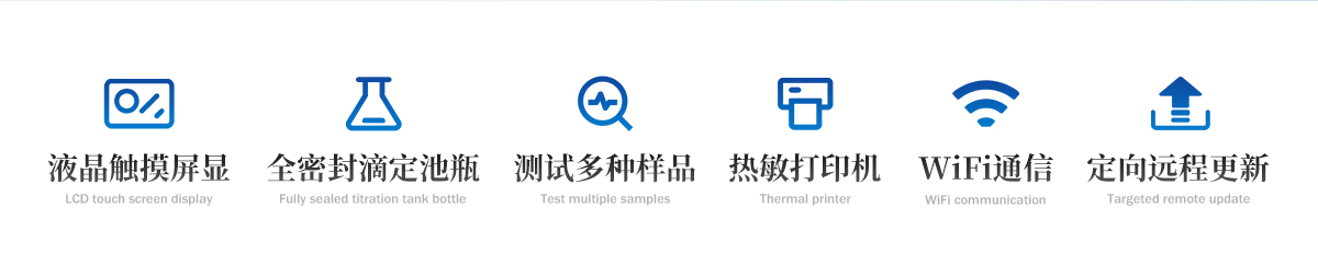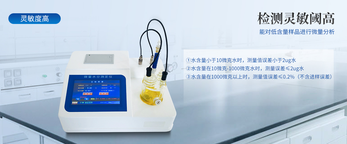 | 微量水分測定儀根據(jù)卡爾-菲休滴定原理,采用**的微機(jī)電路,測定性質(zhì)不同的液體、固體中微量水分的含量。對于不溶于試劑的固體,以及與試劑起化學(xué)反應(yīng)的或容易污染電極的物質(zhì),可配用相應(yīng)的固體、液體進(jìn)樣器,進(jìn)行間接測定。 | 該儀器具有測定精度高、分析速度快、使用范圍廣、穩(wěn)定可靠、操作簡單等優(yōu)點(diǎn)。廣泛用于電力、石油、化工、農(nóng)藥、醫(yī)藥等行業(yè)。樣品測定過程由儀器自動控制,攪拌、測定60秒左右自動完成,直接顯示測定結(jié)果;全密封滴定池瓶,避免試劑與人接觸,也避免環(huán)境濕度的影響; |