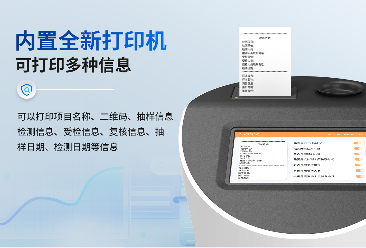 隨著消費(fèi)者對(duì)食品安全問題的日益關(guān)注,雞蛋品質(zhì)檢測(cè)成為了保障雞蛋質(zhì)量、維護(hù)消費(fèi)者健康權(quán)益的重要手段。我司生產(chǎn)的雞蛋品質(zhì)檢測(cè)儀可通過專業(yè)的檢測(cè)項(xiàng)目和方法,進(jìn)行雞蛋的品質(zhì)檢測(cè)和分析。