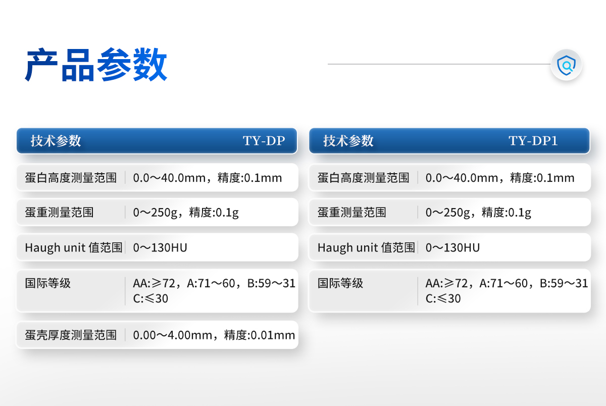 產(chǎn)品介紹: 隨著消費(fèi)者對(duì)食品安全問題的日益關(guān)注,雞蛋品質(zhì)檢測(cè)成為了保障雞蛋質(zhì)量、維護(hù)消費(fèi)者健康權(quán)益的重要手段。我司生產(chǎn)的雞蛋品質(zhì)檢測(cè)儀可通過專業(yè)的檢測(cè)項(xiàng)目和方法,進(jìn)行雞蛋的品質(zhì)檢測(cè)和分析。 雞蛋品質(zhì)分析儀技術(shù)指標(biāo):雞蛋測(cè)重,蛋白測(cè)高,蛋黃測(cè)色,哈夫值顯示,蛋黃高度,蛋殼厚度等