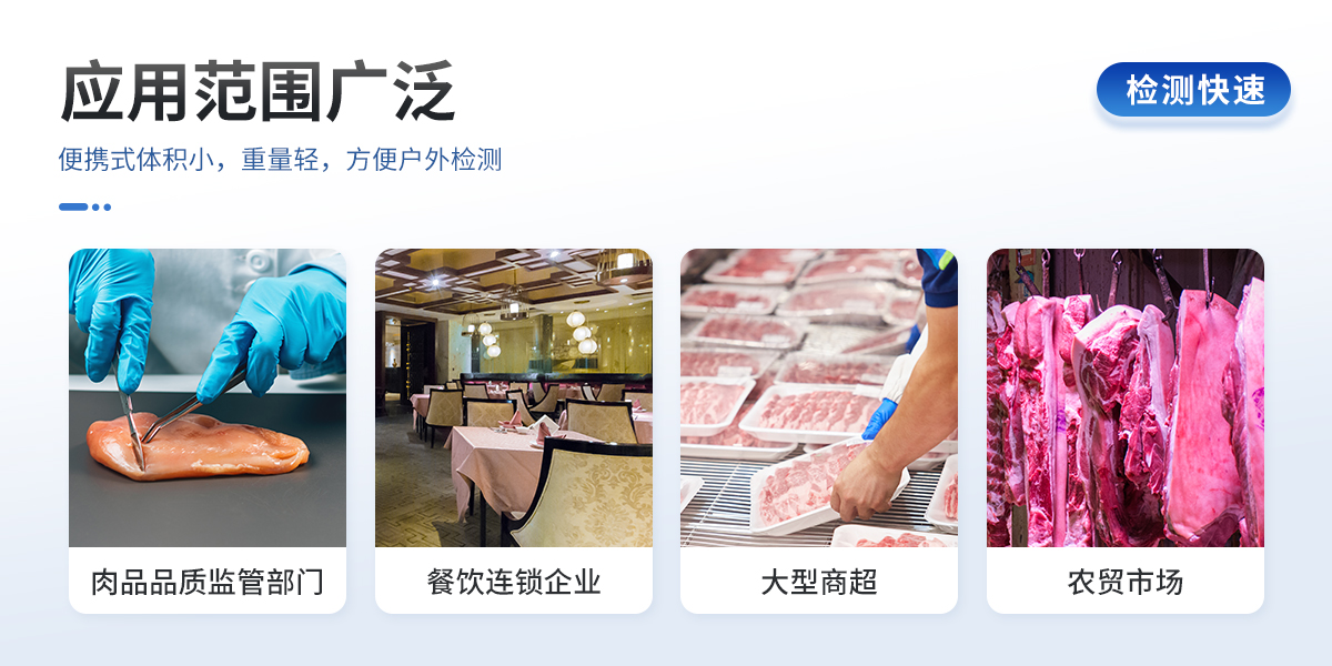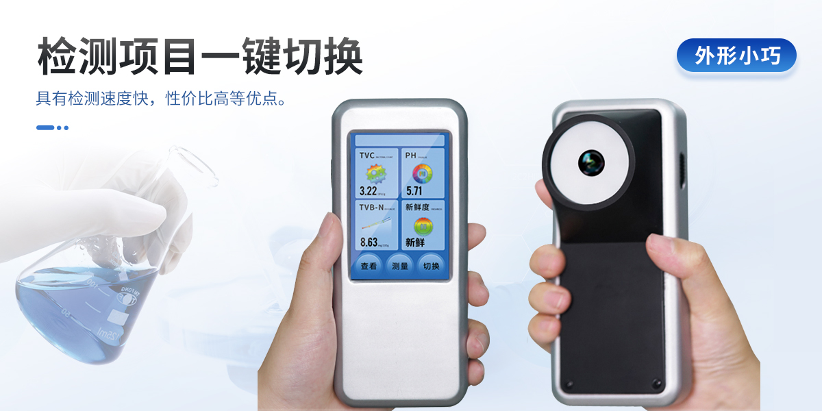 聯(lián)合中國農(nóng)業(yè)大學彭彥昆教授團隊研發(fā)的掌上式生鮮肉新鮮度分析儀,可用于檢測生鮮肉的TVC、pH、TVB-N、新鮮度、L*、A*、B*等評價指標。Palmarter具有體積小、便 于攜帶、性價比高等特點,其應用場景包括但不限于肉儲運企業(yè)、肉品品質監(jiān)管部門、飯店、超市、菜場、家庭等。