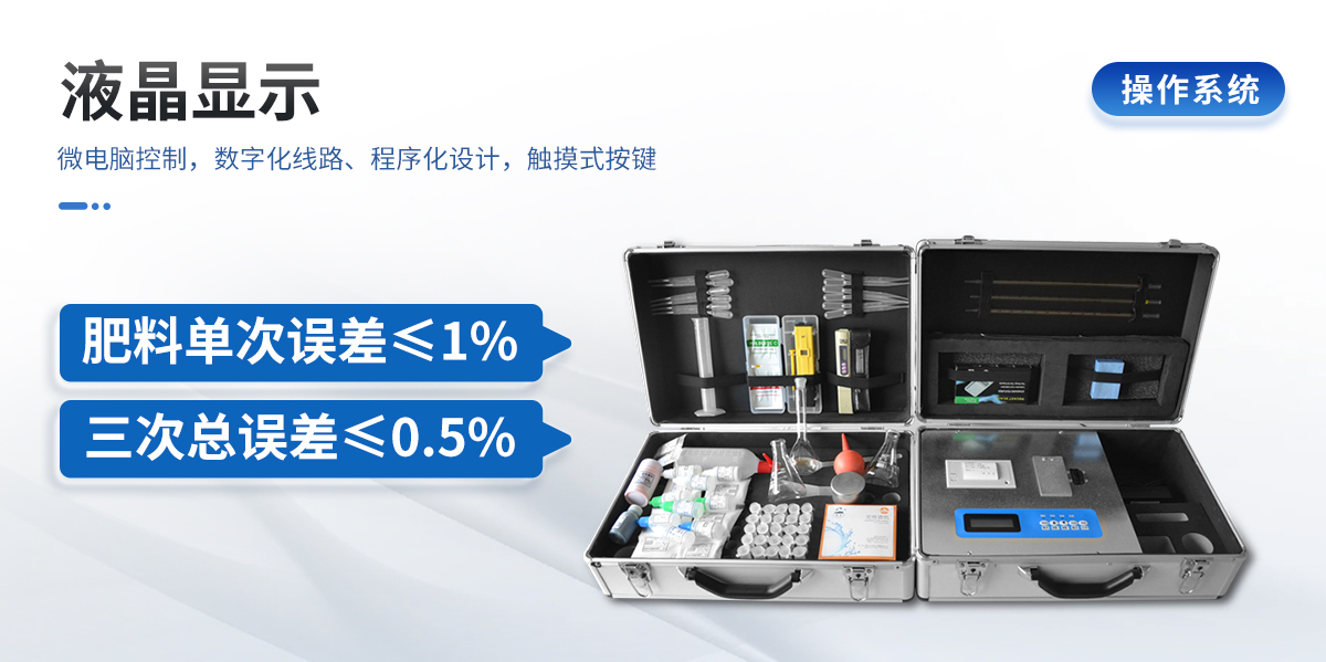 | 肥料養(yǎng)分專用檢測儀功能全:測試項目國內(nèi)外*全(各類藥劑均可選購)。 | 配套齊全,該儀器集藥、器、儀為一體,攜帶方便,相當(dāng)于一個小型實驗室,用戶只需提供蒸餾水即可在要求時間內(nèi)完成全部操作。適于農(nóng)業(yè)服務(wù)部門或農(nóng)資經(jīng)銷商鑒別肥料真假、肥料廠商肥料生產(chǎn)中控、農(nóng)資質(zhì)檢部門進行農(nóng)資打假,規(guī)范農(nóng)資市場。 | 性能可靠:工作穩(wěn)定性優(yōu)于國家標準JJG179-90指標的10倍以上,重復(fù)性達到光柵型分光光度計指標水平。 |