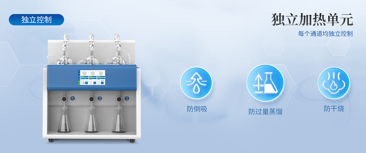 | 1.自動化程度高:內置冷卻水循環(huán)機,實現全自動化操作,提高實驗效率與準確性。 | 2.多通道獨立控制:3個加熱單元各自獨立,配備防倒吸、防過量蒸餾及防干燒保護。 | 3.智能觸控:7寸液晶觸摸屏,支持自定義保存*多1000種蒸餾方法,內置18種國標方法。 | 4.精準控制:采用**陶瓷遠紅外加熱,具備時間與重量雙重終點控制,確保蒸餾精度達0.1ml。 | 5.安全可靠:集成自動清洗、自動氣密檢查、反吹等功能,確保設備長期穩(wěn)定運行。 | 6.操作簡便:一鍵啟動,支持遠程OTA系統(tǒng)升級,滿足不同用戶的使用需求。 |