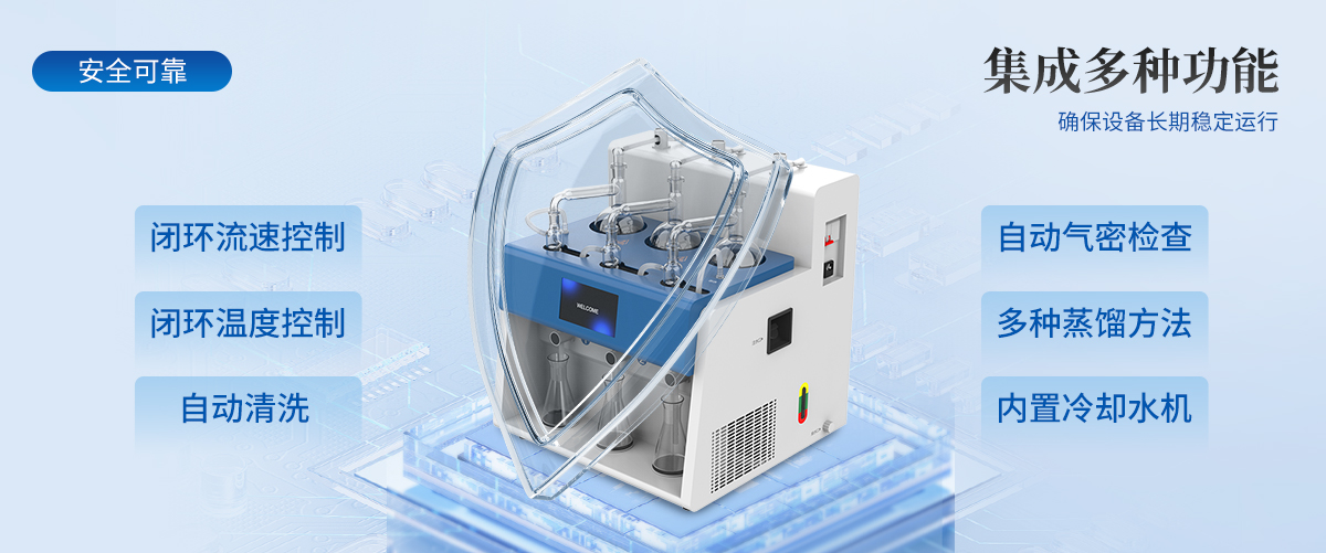 | 功能 | 防倒吸、防蒸餾過量保護、自動防干燒、閉環(huán)流速控制、閉環(huán)溫度控制、自動清洗、自動氣密檢查、多種蒸餾方法、內置冷卻水機 | |