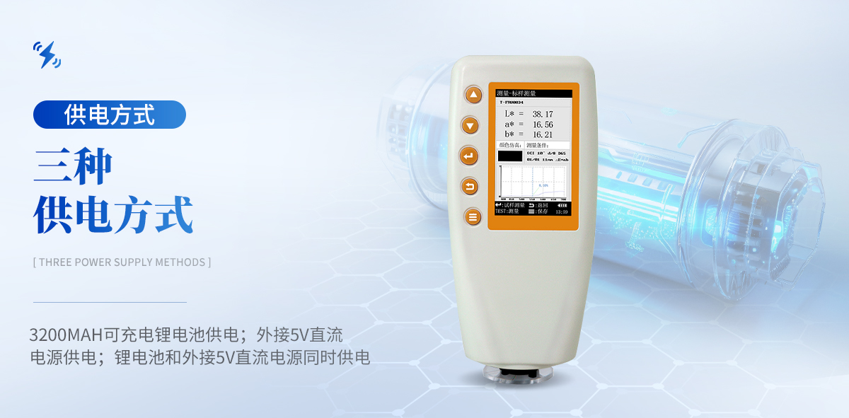 | 1.采用自主創(chuàng)新**智能監(jiān)控整個儀器的電子電路系統(tǒng)和光學(xué)系統(tǒng),確保儀器在每次測量時不受外界環(huán)境,從而達到高穩(wěn)定性(ΔE小于0.07) | 2.臺間差是指每臺儀器測量數(shù)據(jù)之間的差別。 在產(chǎn)品加工生產(chǎn)時,每臺儀器的品質(zhì)嚴格把控;在產(chǎn)品出庫時,每臺儀器的品檢嚴格把關(guān);確保每臺儀器的臺間差達到更小化,從而為儀器使用者創(chuàng)造一個可靠的數(shù)據(jù)化客商交流環(huán)境。 | 3.TY-SCL02便攜式分光測色儀具有三種供電方式:3200mAH可充電鋰電池供電;外接5V直流電源供電;鋰電池和外接5V直流電源同時供電; 鋰電池充電一次后可測量次數(shù)高達10000 次以上,此儀器設(shè)有過壓保護系統(tǒng),當(dāng)客戶接錯電源時儀器內(nèi)部的過壓系統(tǒng)就會啟動,從而保護儀器不會被燒壞。 | 4.采樣高精密的光譜分光系統(tǒng)和穩(wěn)定的光學(xué)系統(tǒng),**的分離不同的波長光波,從而得到精準(zhǔn)的光譜數(shù)據(jù)和Lab值。 | 5.TY-SCL02便攜式分光測色儀具有平均測量功能,平均測量次數(shù)可設(shè)置為1-99次。 | 6.儀器中內(nèi)置六種光源A、C、D50、D65、F2(CWF)和F12(U30)和三種顯色參數(shù)(L*a*b*、L*C*h*和Yxy),可滿足使用者的不同的顏色測量需求。 | 7.人體工學(xué)設(shè)計的機身帶給你更舒適的測量體驗。 | 8.采用2.8寸TFF彩色顯示屏、圖形化的用戶界面,為您實現(xiàn)更容易的操作。 | 9.TY-SCL02便攜式分光測色儀可與電腦端上位機軟件(選配)進行通訊連接,利用電腦端軟件對儀器的功能進行拓展,可實現(xiàn)數(shù)據(jù)的分析、上傳、下載、打印以及手動輸入LAB值等功能;也可與微型打印機(選配)進行連接,可以實現(xiàn)測量數(shù)據(jù)的實時打印。 |