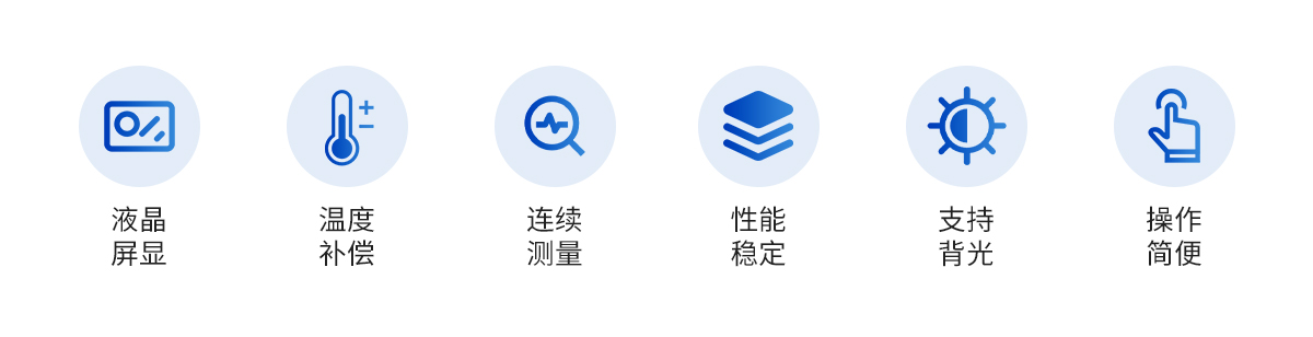 | 1.支持IP65防護(hù)等級(jí)。 | 2.支持自動(dòng)識(shí)別NIST、USA、EURO*多三點(diǎn)標(biāo)定功能。 | 3.支持背光和恢復(fù)出廠、手動(dòng)溫補(bǔ)、連續(xù)測(cè)量模式功能。 | 4.顯示標(biāo)定、測(cè)量和數(shù)據(jù)穩(wěn)定符號(hào)及溫度、電極斜率數(shù)據(jù)。 | 5.支持?jǐn)?shù)據(jù)儲(chǔ)存、查閱、刪除功能。 |