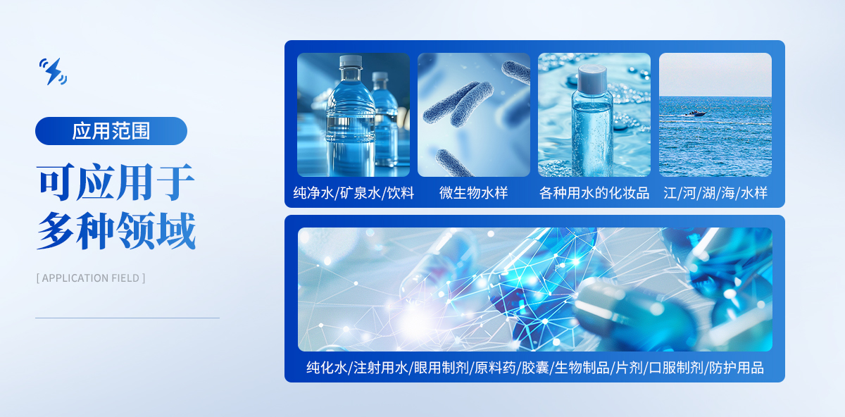 | 1.制藥醫(yī)療:純化水、注射用水、眼用制劑、原料藥、膠囊、生物制品、片劑、口服制劑,防護用品。 | 2.食品:純凈水、礦泉水、飲料。 | 3.化工:各種需測試微生物水樣。 | 4.化妝品:各種用水及產(chǎn)品。 | 5.控疾:江、河、湖、海、水樣。 |