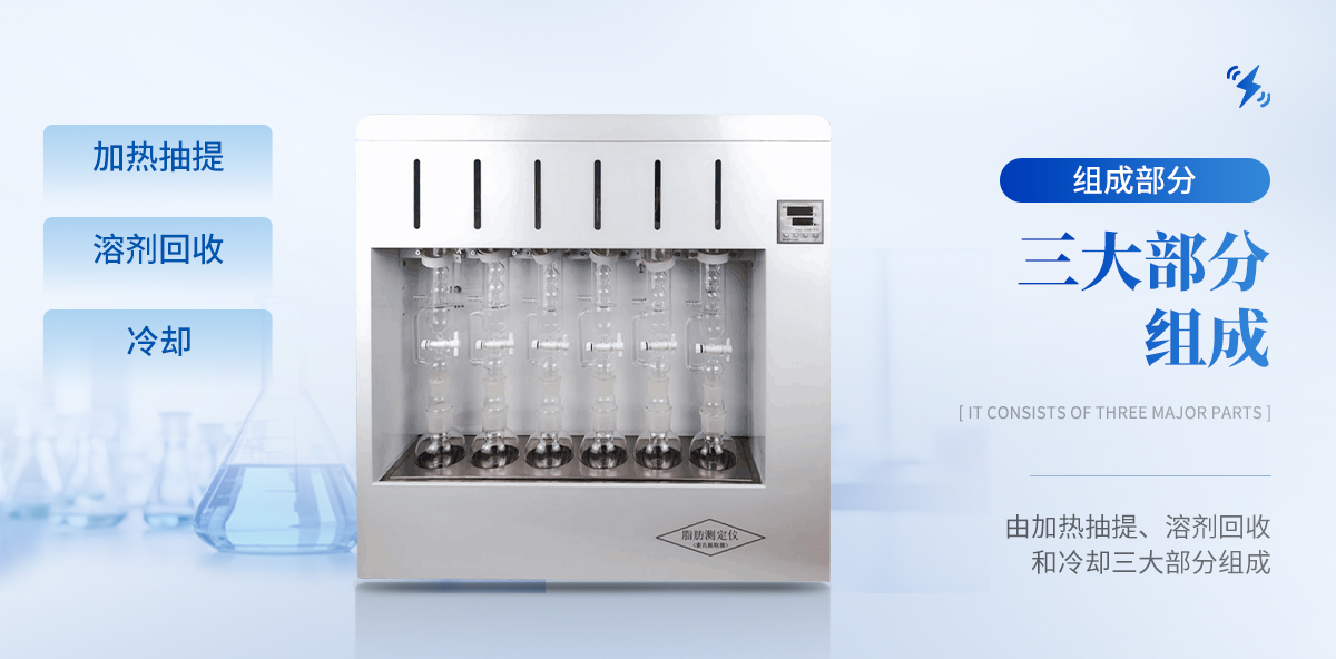 | 脂肪測定儀主要由加熱抽提,溶劑回收和冷卻三大部分組成。操作時可以根據(jù)試劑沸點和環(huán)境溫度不同而調(diào)節(jié)加熱溫度,試樣在抽提過程反復(fù)浸泡及抽提,從而達(dá)到快速提取目的;本儀器可自動回收溶劑,大大方便了用戶的使用,并節(jié)約了很多時間。 |