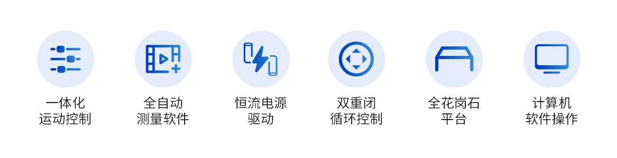 | 儀器基座 | CCD | 鏡頭 | 光柵尺 | 導(dǎo)軌 | 傳動(dòng) | 電機(jī) | 運(yùn)動(dòng)控制 | 程控光源 | 操縱桿 | 全自動(dòng)測量軟件 | 加密狗 | 光學(xué)校正片 | 電壓 | 計(jì)算機(jī) |