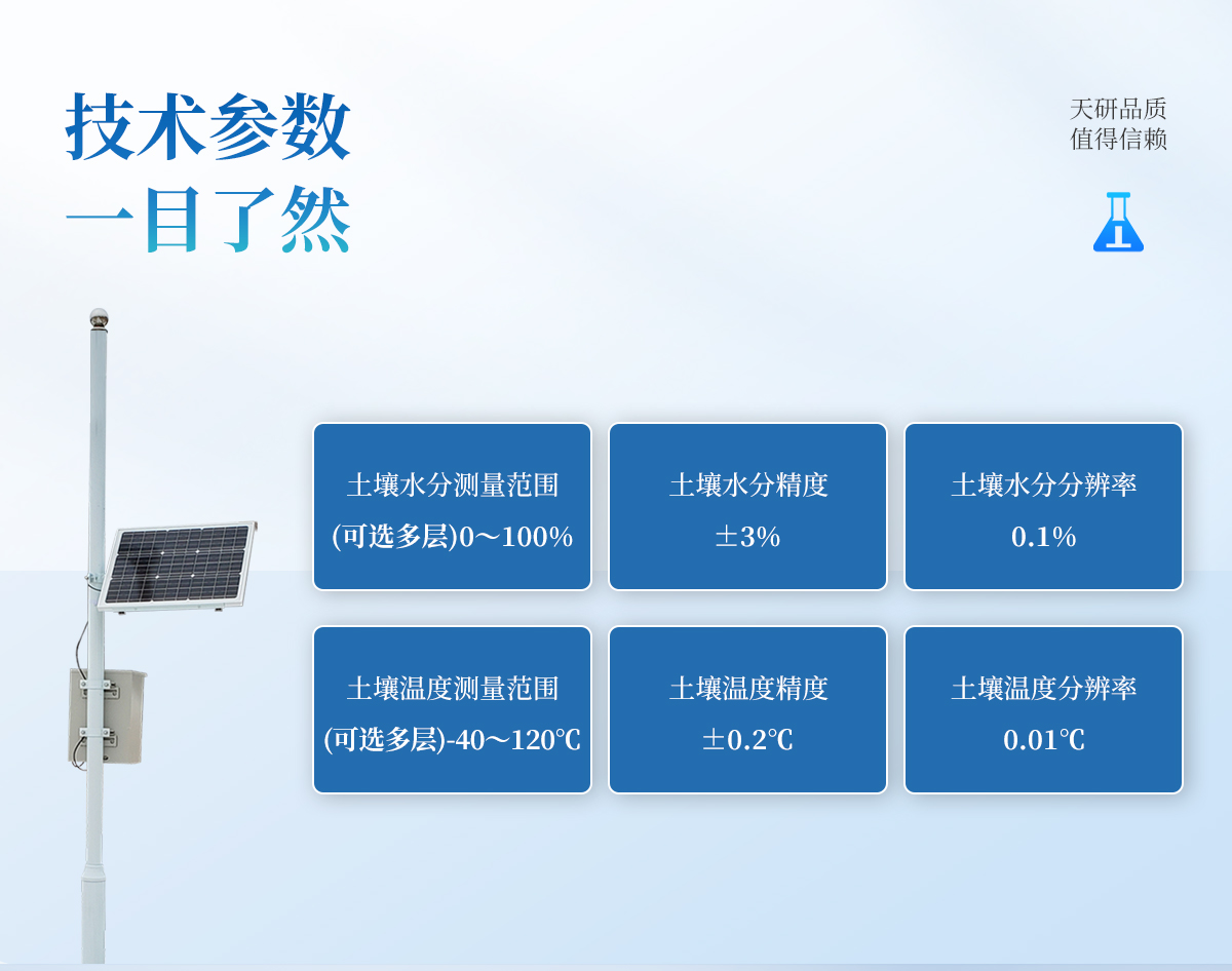 | 主控制器技術參數(shù) 數(shù)據(jù)存儲空間:≥100000條 記錄間隔:1分-24小時可調 數(shù)據(jù)傳輸:無線傳輸 工作環(huán)境:-30℃~80℃ 供電方式:220v市電、太陽能供電系統(tǒng)同時使用 | 傳感器技術參數(shù) 空氣濕度:0~100% 精度:±3% 分辨率:0.1% 光照 :-20~80℃ 精度:±2% 雨量 :-20~80℃ 承雨口徑:φ200mm 精度:±2% 分辨率:0.2mm 土壤水分:測量精度:±3% 工作溫度范圍:-20℃~50℃ 土壤ec:測量精度:±4% 土壤EC測量范圍:0.2~12mS/cm 土壤溫度:精度:±0.2℃ 測量范圍:-40℃~120℃ |